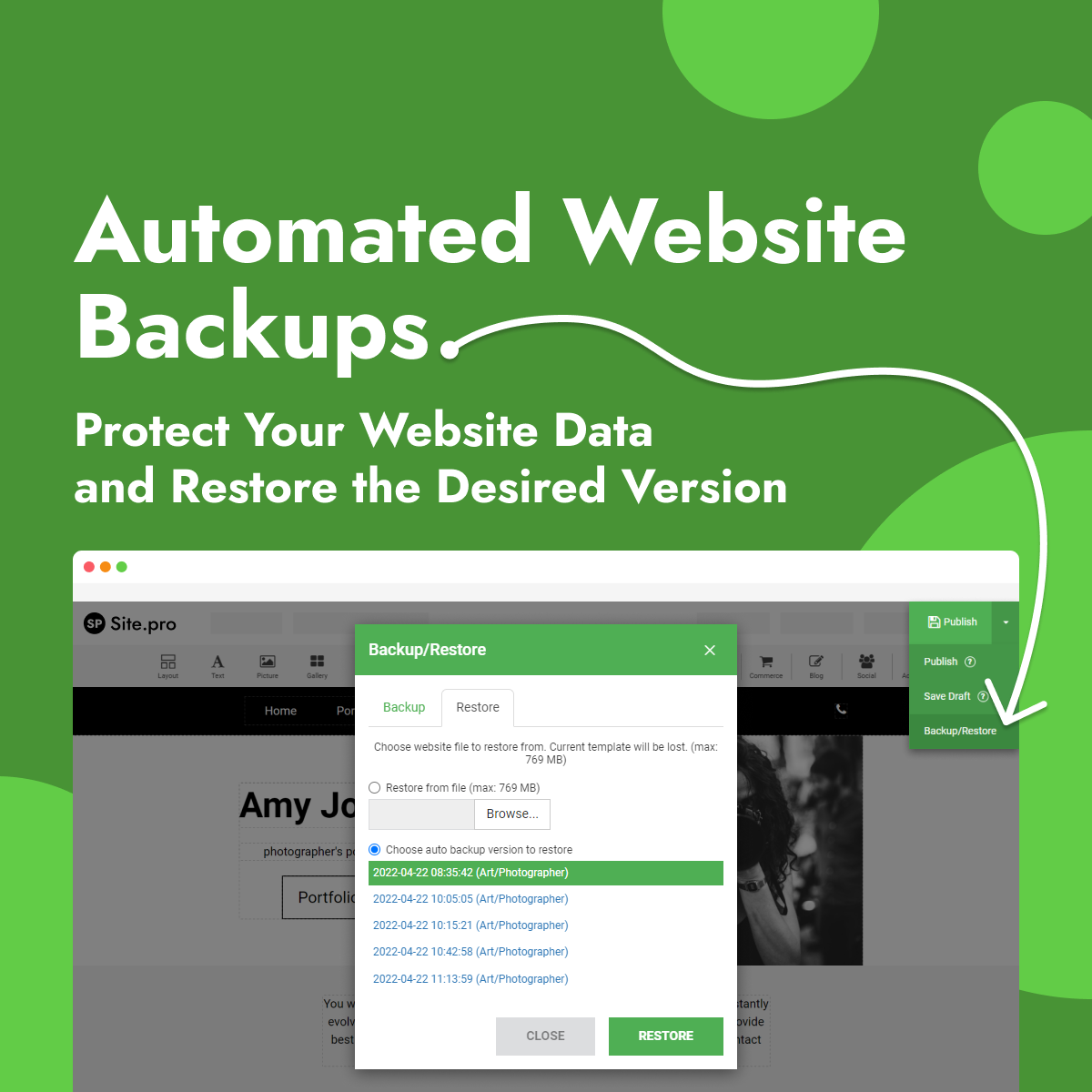 The number of auto-backups per website is limited and 50 copies are saved by default.